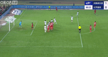 第50分钟,河南头球攻门高出横梁,主裁判吹罚角球